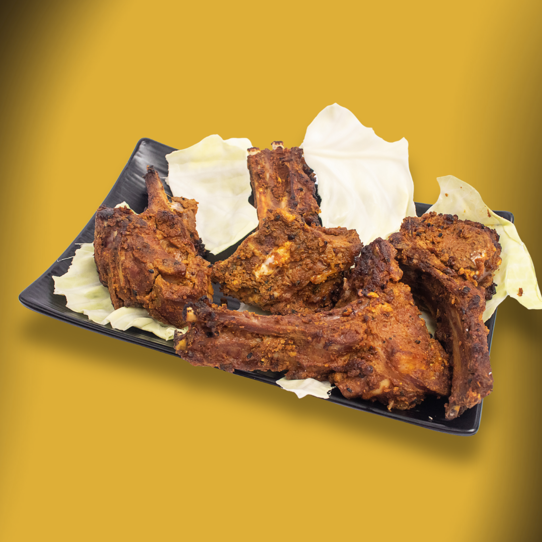 3 Pec Mutton Chops, 3 Pec Mutton Seekh Kabab, 3 Pec Chicken Rashmi Kabab, 3 Pec Chicken Malai Boti, 3 Pec Finger Fish, With Biryani Rice and 3 kind of Sauces Mint Sauces and EMLi Aloo Bukhara Sauces and Tomato Ketchup.
